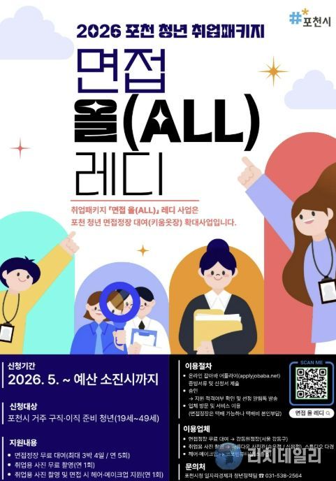 리치데일리 김상현 기자 | 포천시는 구직 및 이직을 준비하는 청년들의 취업 준비 부담을 낮추고 취업 경쟁력을 높이기 위해 오는 5월 2일부터 2026 포천 청년 취업패키지 ‘면접 올(ALL) 레디’ 사업을 운영한다.