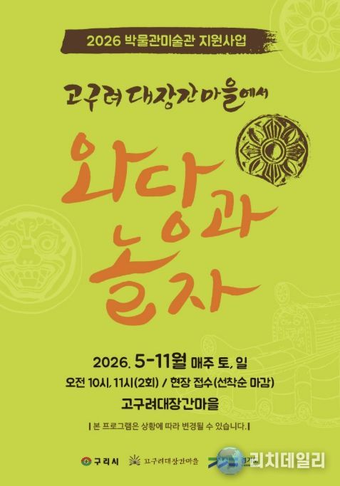 리치데일리 김상현 기자 | 구리시는 오는 5월 2일부터 11월 1일까지 매주 주말 고구려대장간마을에서 2026년 경기도 박물관·미술관 지원사업의 하나로 ‘고구려대장간마을에서 와당과 놀자’ 체험 행사를 운영한다고 밝혔다.