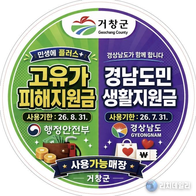 김현미 거창군수 권한대행은 “지원금은 ‘지급’만큼이나 ‘기한 내 사용’이 정책 성과를 좌우한다”며 “전 사용처 100% 부착과 사용기한 표기라는 현장형 편의 시책으로 군민 불편을 최소화하고, 지원금이 지역 상권 매출로 빠르게 이어지도록 하겠다”고 밝혔다.