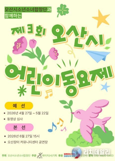 참가 대상은 오산시에 거주하는 7세 어린이부터 초등학생까지 동요를 좋아하는 아동이며, 참가비는 무료다. 예선 심사를 통해 선발된 총 15개 팀이 본선 무대에 오른다.