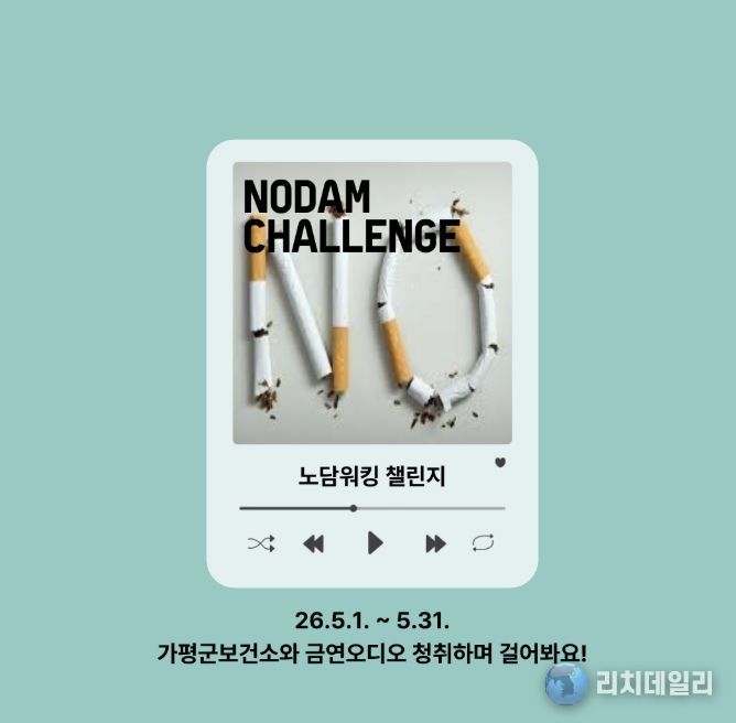 리치데일리 김상현 기자 | 가평군보건소가 ‘세계 금연의 날’을 앞두고 5월 1일부터 한 달간 금연 인식 확산을 위한 ‘노담워킹 챌린지’를 진행한다. 이번 행사는 일상 속 걷기 실천과 금연 홍보를 병행해 군민들의 건강한 생활 습관 형성을 돕고자 마련됐다.