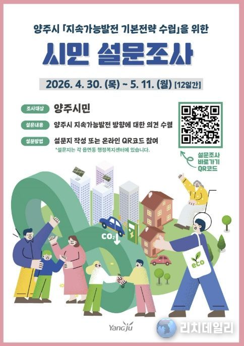 리치데일리 김상현 기자 | 양주시는 ‘지속가능발전 기본전략 및 추진계획’ 수립을 위해 시민 의견을 수렴하는 설문조사를 실시한다.