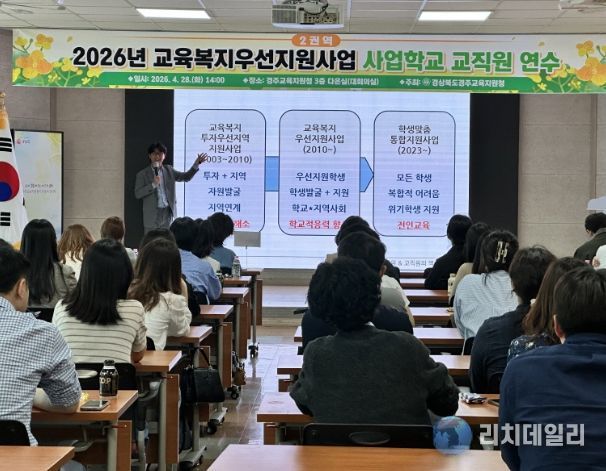 리치데일리 김상현 기자 | 경상북도경주교육지원청은 2026년 4월 28일 경주교육지원청 다온실(3층 대회의실)에서 ‘2026년 교육복지우선지원사업 2권역 사업학교 교직원 연수’를 개최했다.