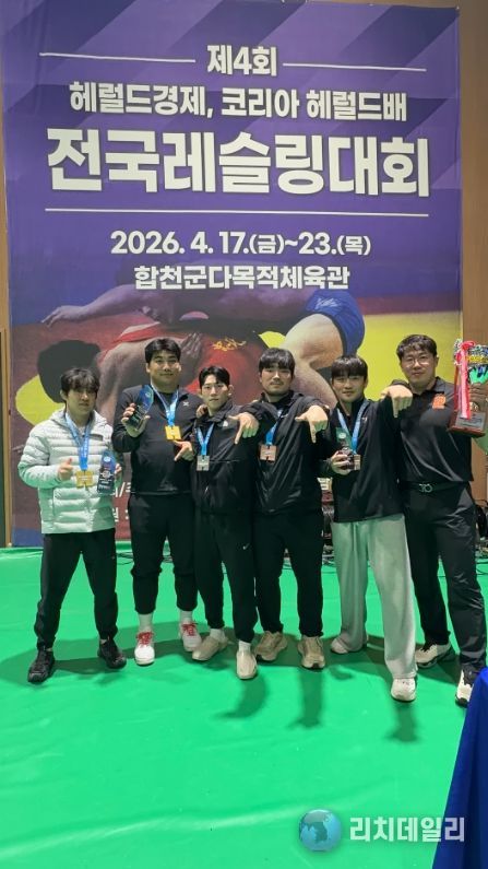 리치데일리 김상현 기자 | 칠곡군청 레슬링팀이 17일부터 합천다목적체육관에서 개최된‘제4회 헤럴드경제· 코리아헤럴드배 전국레슬링대회’에서 금메달 1개와 은메달 2개, 동메달 2개를 획득하며 단체종합우승을 거머쥐었다.