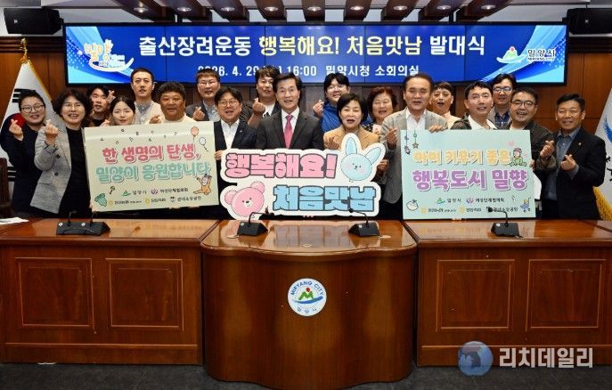 리치데일리 김상현 기자 | 경남 밀양시는 29일 시청 소회의실에서 밀양시여성단체협의회, 농협은행 밀양시지부, 밀양축산농협, 관내 소상공인 등 관계자 22명이 참석한 가운데 출산장려운동 ‘행복해요! 처음맛남’ 발대식을 개최했다.