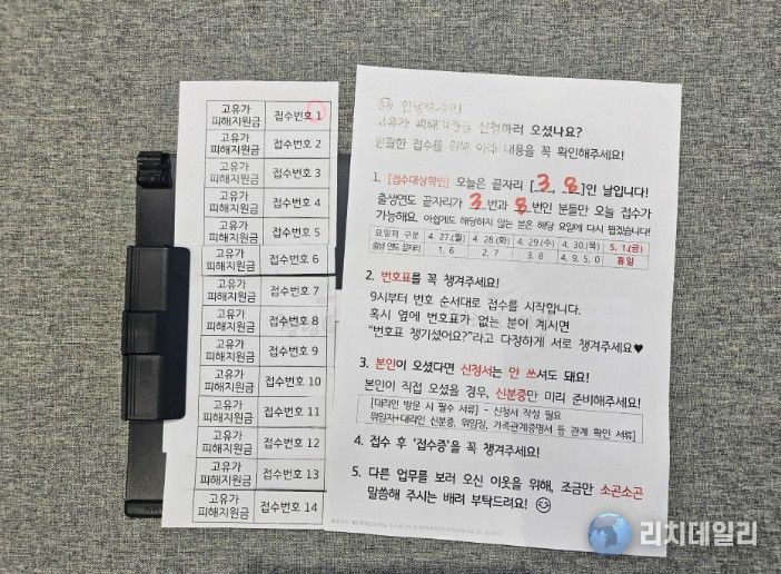 이 편지에는 대기표와 신분증을 잘 챙겼는지, 오늘 신청 번호는 몇 번인지 세심하게 확인해주는 체크리스트와 함께, 대기표를 챙기지 못한 이웃을 서로 챙겨주고 다른 용무로 행정복지센터를 방문한 이웃들을 배려하자는 따뜻한 당부가 담겨 있었다.