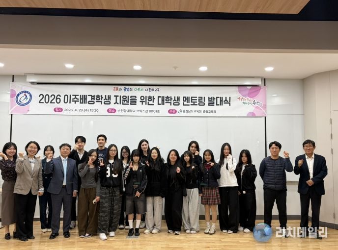 리치데일리 김상현 기자 | 충남교육청은 29일, 순천향대학교(아산)에서 순천향대 지도자 학생 6명과 온양용화고·아산충무고 학생 20명, 담당 교사 등 30여 명이 참석한 가운데 ‘2026 이주배경학생 지원을 위한 대학생 지도 발대식’을 개최했다.