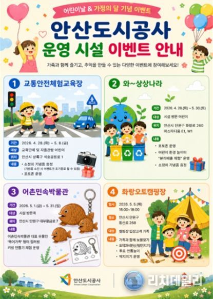 김인옥 안산도시공사 관광레저부장은 “가정의 달을 맞아 어린이와 가족이 함께 즐길 수 있는 다양한 체험 프로그램을 마련했다”며 “앞으로도 시민이 공감하고 참여할 수 있는 체험형 콘텐츠를 지속 확대해 나가겠다”고 말했다.