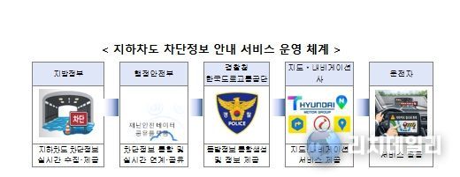 이번 서비스 제공을 위해 행정안전부와 경찰청(한국도로교통공단), 지방정부, 그리고 민간 내비게이션사가 함께 협력한다. 지하차도가 침수되면 지방정부는 현장 통제를 실시함과 동시에 행정안전부의 ‘재난안전데이터 공유플랫폼’에 통제 정보를 전송하고, 이 정보가 경찰청을 거쳐 내비게이션 앱에 실시간 반영되는 방식이다.