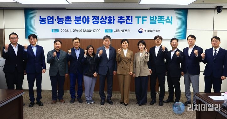 리치데일리 김상현 기자 | 농림축산식품부는 4월 29일 16시, 서울 aT센터에서 ‘농업·농촌 분야 정상화 과제 추진 TF’ 발족식을 개최했다. 농식품부는 TF를 중심으로 불합리한 관행, 작지만 현장에서 꼭 필요로 하는 과제 등을 발굴·개선하여 국민들이 체감할 수 있는 성과를 만들어 내고자 한다.