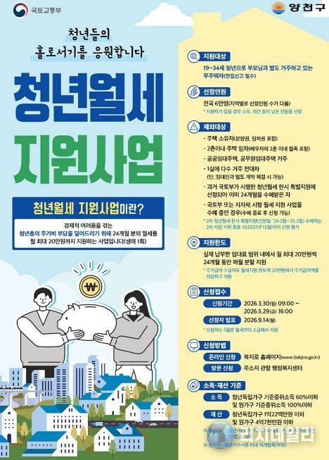 양천구 관계자는 "이번 사업이 청년들의 주거비 부담을 덜고 안정적인 주거생활과 정착에 도움이 될 수 있길 바란다"며 "앞으로도 청년이 체감할 수 있는 실효성 있는 맞춤형 정책을 지속적으로 발굴·확대해 나가겠다"고 말했다.
