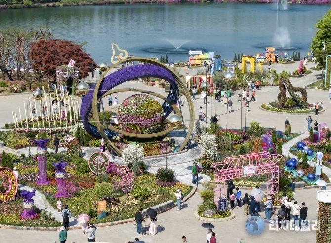 ‘꽃, 시간을 물들이다’를 주제로 열리는 꽃박람회는 야외정원과 실내 전시, 공연·체험을 결합한 복합형 축제로, 5월 10일까지 17일간 운영된다.