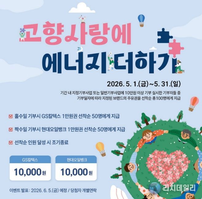 리치데일리 김상현 기자 | 원주시는 고향사랑기부제 활성화를 위해 5월 한 달간 특별 이벤트 ‘고향사랑에 에너지 더하기’를 추진한다.