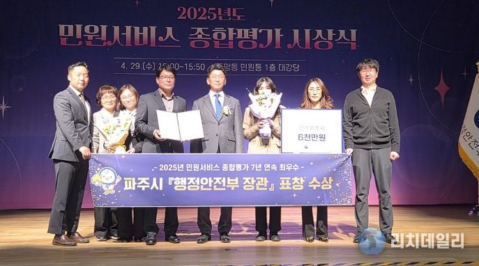파주시 관계자는 “이번 행정안전부 장관 표창은 시민과 공직자가 함께 만든 값진 성과”라며 “앞으로도 신속하고 편리한 민원 서비스를 제공하기 위해 행정서비스 개선에 최선을 다하겠다”라고 밝혔다.