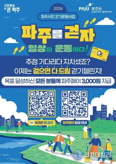 리치데일리 김상현 기자 | 파주시는 시민 건강 증진과 지역 경제 활성화를 위해 모바일 걷기 앱 ‘워크온 걷기 챌린지’특전(인센티브) 지급 방식을 전면 개편하고, 5월부터 시행한다.