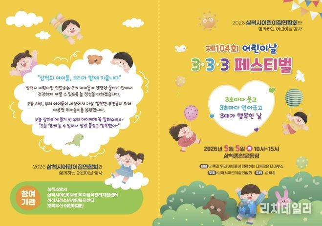 리치데일리 김상현 기자 | 삼척시는 제104회 어린이날을 맞아 어린이와 가족이 함께 즐길 수 있는 행사들을 개최한다고 밝혔다.