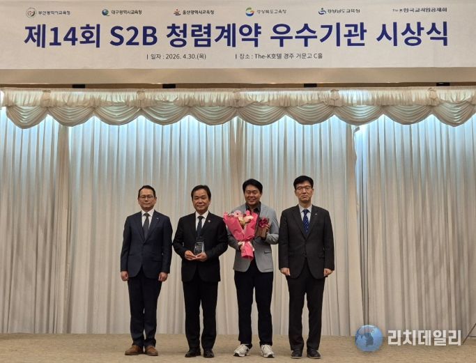 리치데일리 김상현 기자 | 대구달성교육지원청은 한국교직원공제회가 주관하는 ‘제14회 S2B(학교장터) 청렴계약 우수기관’에 대구에서 유일하게 5년 연속 선정되어 30일 경주 The-K 호텔에서 열린 시상식에서 우수기관상을 수상한다.