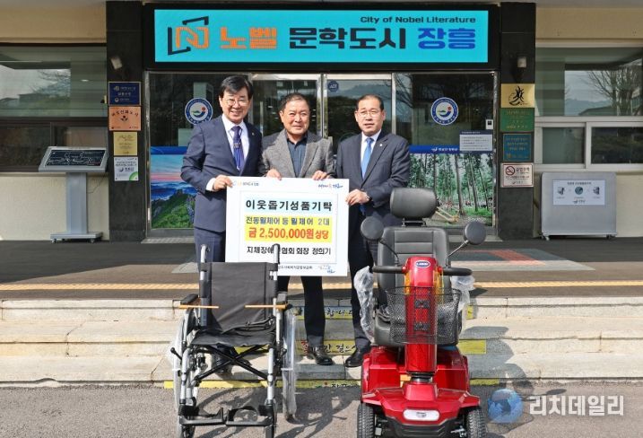 리치데일리 김상현 기자 | 장흥군은 20일 정희기 장흥군지체장애인협회 회장이 지역 내 거동이 불편한 군민을 위해 250만 원 상당의 전동휠체어 및 낙상방지용 휠체어 총 2대를 기탁했다고 밝혔다.