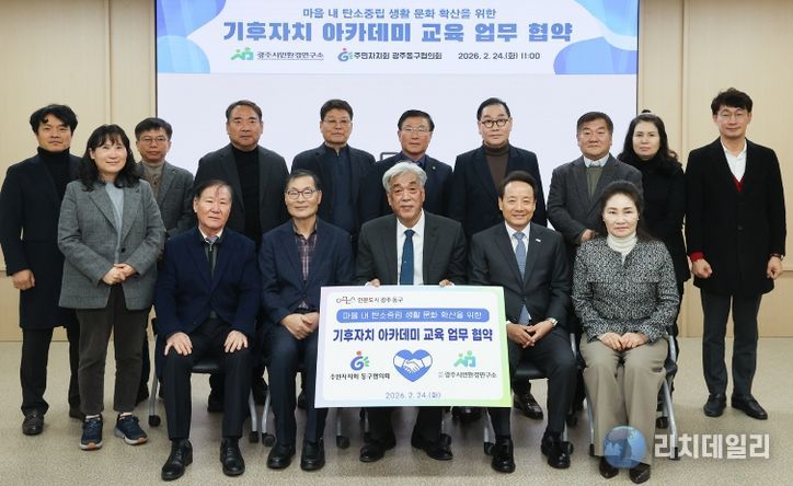 리치데일리 김상현 기자 | 광주 동구는 지난 24일 주민자치회 동구협의회, (사)광주시민환경연구소와 기후위기 대응 역량 강화를 위한 업무협약을 체결하고, 관내 13개 동을 대상으로 ‘기후자치 아카데미’를 운영했다고 밝혔다.