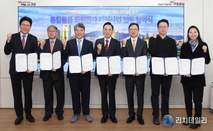 리치데일리 김상현 기자 | 꿈이 모이는 도시, 미래를 그리는 강남구가 퇴원 이후 돌봄 공백을 줄이고 지역사회 중심의 돌봄 체계를 강화하기 위해 2월 25일 구청에서 관내 6개 의료기관과 '통합돌봄 퇴원환자 지원사업' 추진을 위한 업무협약(MOU)을 체결했다. 협약 기관은 삼성서울병원, 연세대학교의과대학 강남세브란스병원, 강남베드로병원, 나누리병원, 메드렉스병원, 강남구립행복요양병원이다.