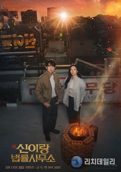 스페셜 포스터는 그간 법률사무소 내부에 집중됐던 시선을 건물 ‘옥상’으로 확장시킨다. 서울 한가운데 빌딩 숲 사이로 노을이 붉게 물든 시간, 무당집이었던 신이랑 법률사무소가 위치한 건물의 옥상에서 신이랑(유연석)과 한나현(이솜)이 하늘을 올려다보고 있다. 여기서 이목을 끄는 건 두 변호사 앞에 놓인 화로다. 벽돌로 둘러싸인 화로 안에는 불길이 피어오르고, 그 아래에는 부적이 놓여 있다. 이는 신이랑이 망자의 恨(한)을 통쾌하게 풀어준 뒤, 그 영혼을 정성껏 떠나보내는 마지막 의식이 치러지는 공간임을 의미한다.
