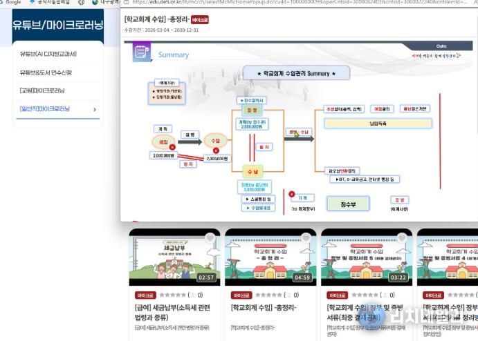 리치데일리 김상현 기자 | 대구시교육청 산하 교육연수원은 학교 현장의 효율적인 지원과 교육행정 역량 강화를 위해, 직무에 필요한 맞춤형 내용을 단시간에 학습할 수 있는 ‘학교행정 실무 마이크로러닝 과정’을 연간 상시 운영한다고 밝혔다.