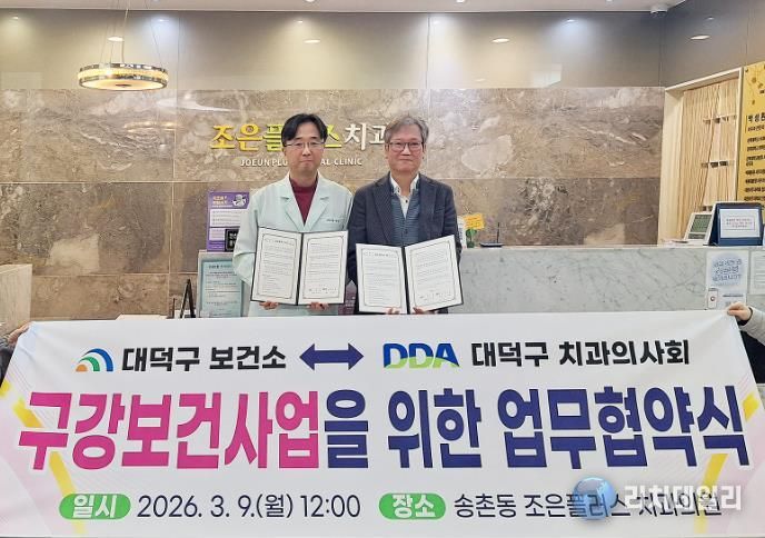 한편 대덕구 보건소는 이번 협약을 계기로 지역사회 내 민·관 협력 네트워크를 강화하고 주민 체감형 예방 구강보건사업을 폭넓게 전개할 계획이다.