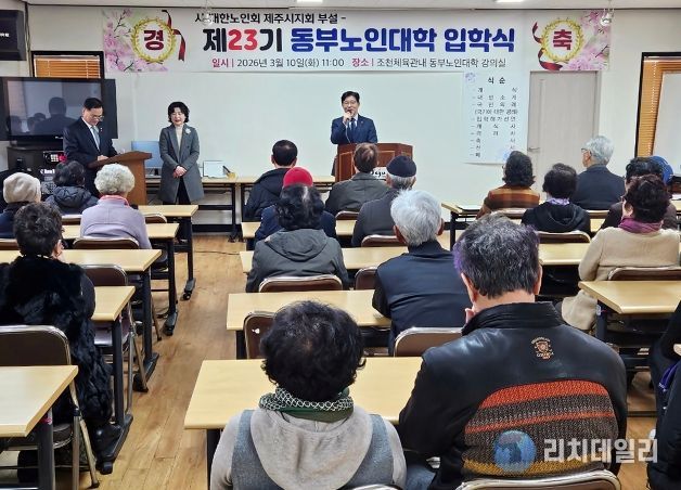 리치데일리 김상현 기자 | 현원돈 제주시 부시장은 3월 10일 조천체육관에서 열린 제23기 제주시동부노인대학 입학식에 참석해 어르신들의 배움에 대한 열정에 감사의 뜻을 전했다.