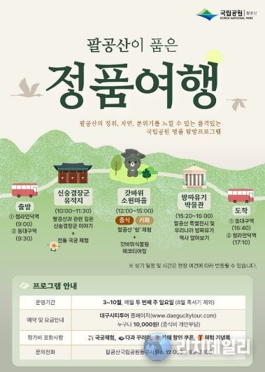 리치데일리 김상현 기자 | 대구광역시와 팔공산국립공원동부사무소는 지난해 780여 명이 참여하며 큰 인기를 모았던 ‘팔공산국립공원 생태관광 시티투어 특별노선’을 올해도 운영한다.