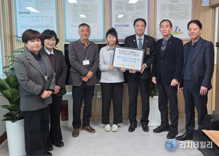 리치데일리 김상현 기자 | 제주도교육청 제주영지학교는 9일 교장실에서 국제로타리3662지구 제주중앙로타리클럽 회원들과 제주영지학교 학생 정보화교육 지원을 위한 태블릿 컴퓨터 전달식을 진행했다.