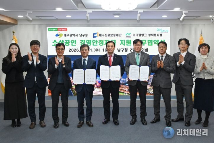 리치데일리 김상현 기자 | 대구 남구는 11일 지역 소상공인들의 경영난 해소를 위해 대구신용보증재단 및 아이엠뱅크 봉덕동지점과 소상공인 경영안정자금 지원 업무협약을 체결했다.