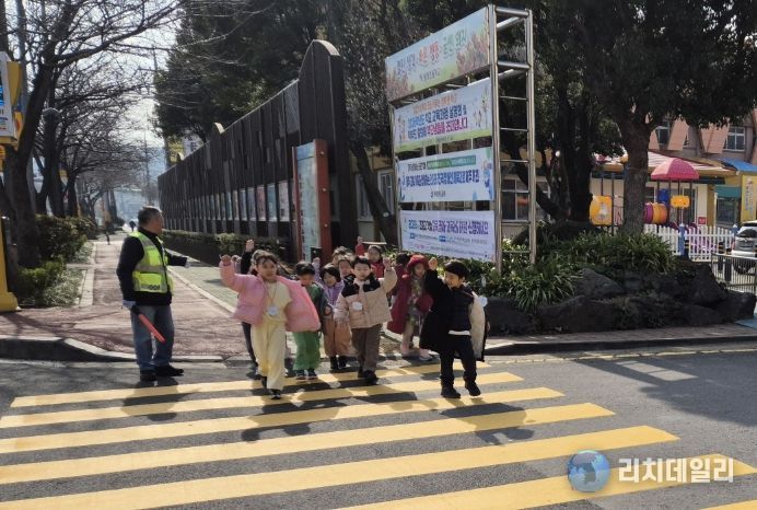 리치데일리 김상현 기자 | 제주도교육청 봉개초등학교병설유치원은 10일 신학기를 맞아 유아들을 대상으로 실제 횡단보도를 건너보는 교통안전 체험교육을 실시했다.