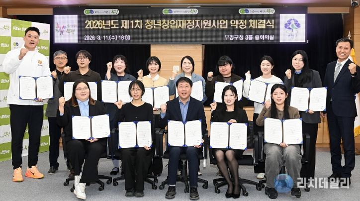 리치데일리 김상현 기자 | 부평구는 지난 11일 올해로 8년 차를 맞이한 ‘청년창업 재정지원 사업’ 선정자 13명과 지원 약정을 체결했다고 밝혔다.