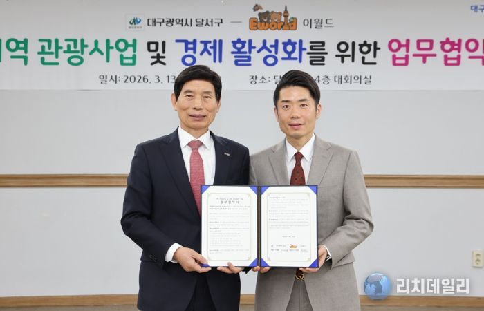 리치데일리 김상현 기자 | 대구 달서구는 지역 관광산업 활성화와 관광객 유치 확대를 위해 13일 구청 회의실에서 이월드와 업무협약(MOU)을 체결했다.