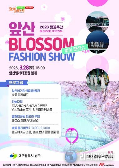 리치데일리 김상현 기자 | 대구 남구는 오는 3월 28일 지역의 대표 관광명소인 앞산빨래터공원에서 벚꽃패션쇼 이벤트를 개최한다고 밝혔다.