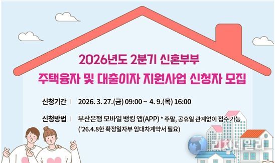 지원을 희망하는 시 거주 무주택 신혼부부는 오는 3월 27일 오전 9시부터 4월 9일 오후 4시까지 부산은행 모바일 뱅킹 앱을 통해 신청할 수 있다.