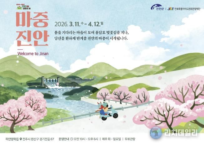 리치데일리 김상현 기자 | 진안군은 ‘2026 진안 방문의 해’를 맞아 전북특별자치도문화관광재단과 함께 오는 4월 12일까지 한옥마을에 위치한 전주 하얀양옥집 복합문화공간에서 기획전시 ‘마중, 진안’을 개최한다.