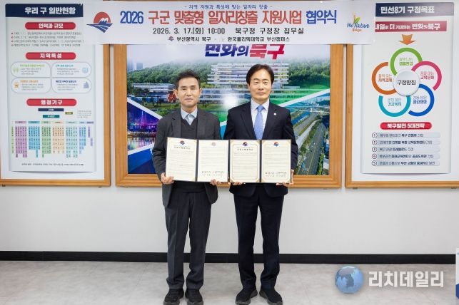 리치데일리 김상현 기자 | 부산 북구는 부산시 주최 ‘2026년 구·군 맞춤형 일자리창출 공모사업’에 '홈 인테리어 시공전문가 양성사업'이 선정됨에 따라, 한국폴리텍Ⅶ대학 부산캠퍼스 산학협력처와 사업 추진을 위한 협약을 체결했다고 17일 밝혔다.