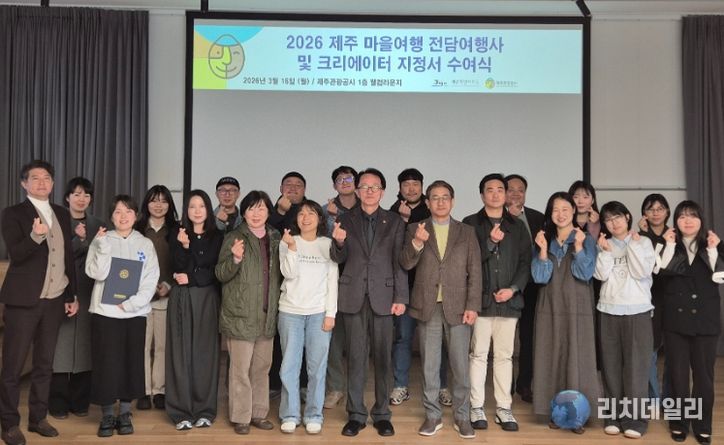 리치데일리 김상현 기자 | 제주특별자치도와 제주관광공사(사장 고승철)은 3월 16일 월요일, 제주 웰컴센터에서 ‘2026 제주 마을 여행 전담 여행사 및 크리에이터’ 지정서 수여식을 개최하고 총 11개소를 공식 지정했다고 17일 밝혔다.