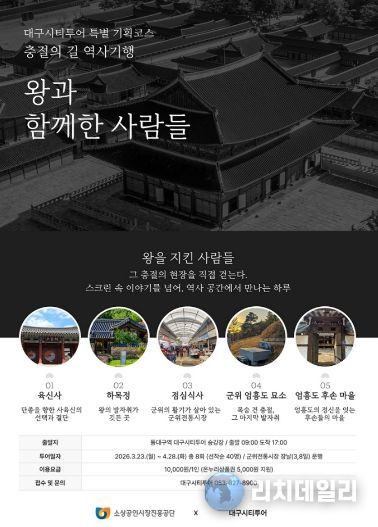 황보란 대구광역시 문화체육관광국장은 “영화 ‘왕과 사는 남자’를 통해 다시금 조명받고 있는 단종과 충신들의 이야기를 대구의 역사 자원과 결합해 이번 코스를 기획했다”며 “역사적 교훈은 물론 전통시장의 활기까지 함께 경험할 수 있는 이번 투어에 많은 관심을 부탁드린다”고 말했다.