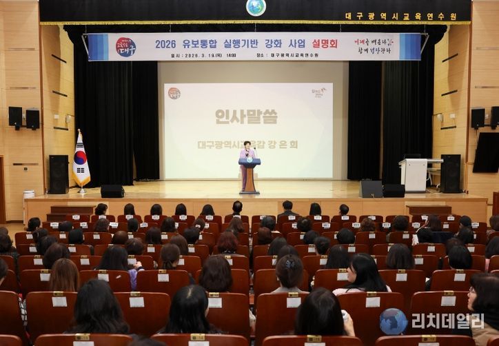 리치데일리 김상현 기자 | 대구시교육청은 3월 19일 오후 2시 대구교육연수원 대강당에서 어린이집 원장 500여 명을 대상으로 ‘2026 유보통합 실행기반 강화 사업 설명회’를 개최했다.