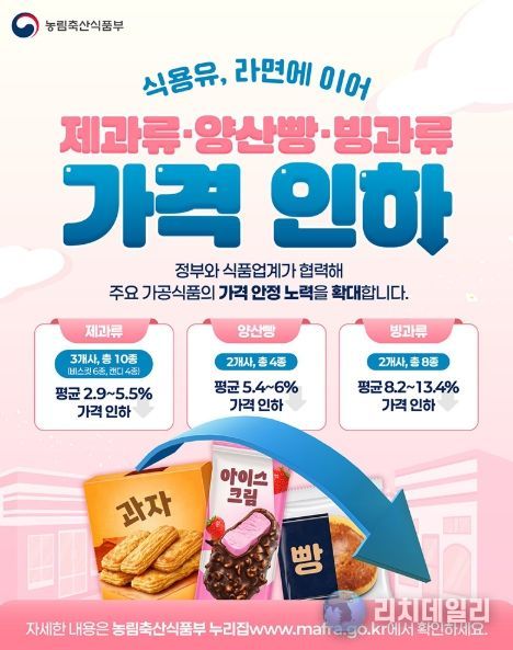 정부와 식품업계가 협력해 주요 가공식품의 가격 안정 노력을 확대합니다.