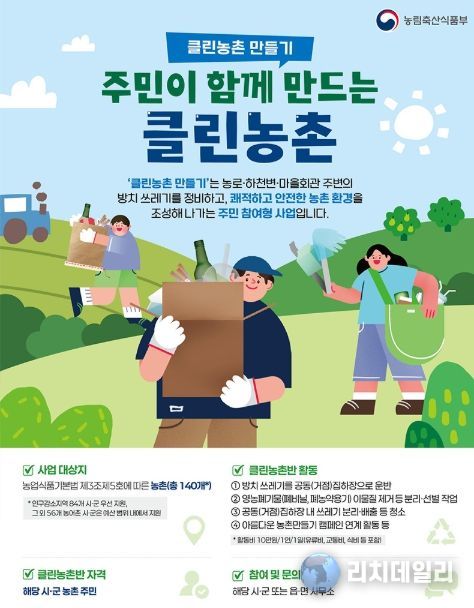 리치데일리 김상현 기자 | '클린농촌 만들기'는 농로·하천변·마을회관 주변의 방치 쓰레기를 정비하고, 쾌적하고 안전한 농촌 환경을 조성해 나가는 주민 참여형 사업입니다.
