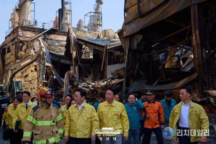 리치데일리 김상현 기자 | 이재명 대통령은 21일 오후, 20일 대전 대덕구에서 발생한 안전공업 화재 현장을 찾아 피해 상황과 구조활동 전반을 점검하고, 유가족들의 목소리를 청취했다.