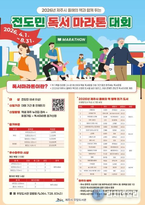 이번 대회는 ‘제주시 올해의 책’과 연계해 추진하는 전 도민 참여형 행사로, 책 읽기를 마라톤처럼 꾸준히 실천할 수 있도록 기획됐다. 책 1쪽을 2m로 환산해 개인별 목표 거리를 설정하고, 일정 기간 독서를 통해 목표를 달성하는 방식으로 운영된다.