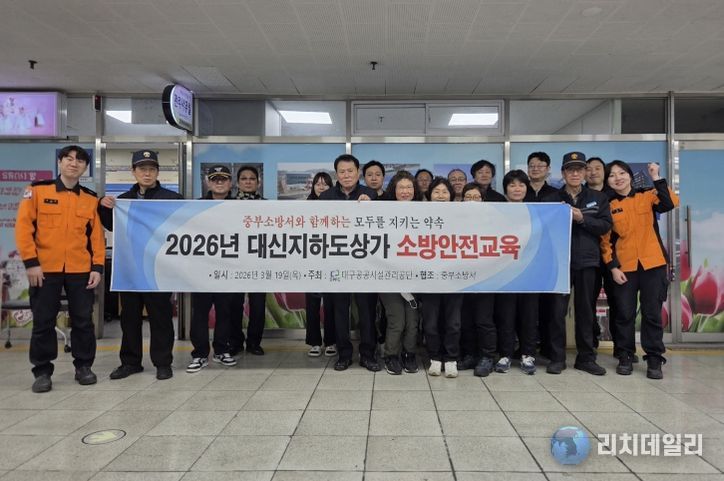 리치데일리 김상현 기자 | 대구공공시설관리공단은 지난 3월 19일 대신지하도상가에서 이용 시민, 공단 직원, 입점 상인을 대상으로, 대구 중부소방서 전문가를 초청하여 ‘찾아가는 소방안전교육’을 실시했다.