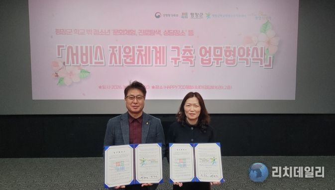 리치데일리 김상현 기자 | 평창군학교밖청소년지원센터와 HAPPY700평창시네마는 24일, 관내 ‘학교 밖 청소년’ 및 ‘학업 중단 숙려 청소년’들이 안전하고 건강한 사회 구성원으로서 성장할 수 있도록 지원하기 위하여 서비스 지원체계의 확충을 위한 업무협약식을 가졌다.