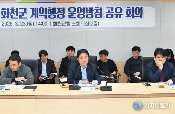 군은 지난 23일 오후 군청에서 각 실과소장 및 사업부서 주무담당, 지역 건설 관련 단체장들이 참석한 가운데‘2026 화천군 계약행정 운영 방침 공유 회의’를 개최했다.