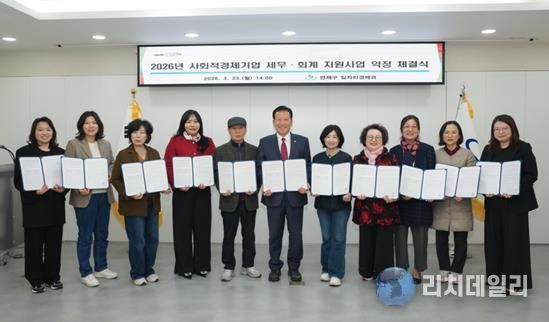 구는 지난 3월 23일 구청 소회의실에서 ‘2026년 연제구 사회적경제기업 세무·회계 지원사업 약정 체결식’을 개최하고, 선정된 10개 사회적경제기업과 지원 약정을 체결했다.