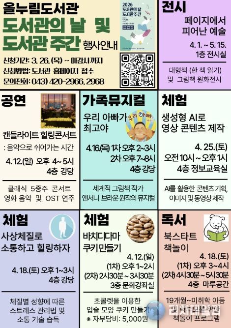 리치데일리 김상현 기자 | 단양군이 ‘2026 도서관의 날·도서관 주간’을 맞아 다채로운 독서문화 행사를 운영한다.